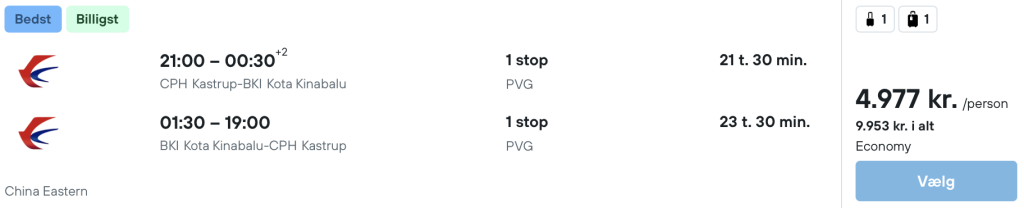 På vores flysøgningsmaskine har vi fundet billige flybilletter fra København til Borneo. Der er mange alternative datoer med samme billige priser. Typisk med mandage eller torsdage som rejsedage.