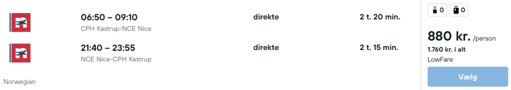 På vores flysøgemaskine har vi fundet billige flybilletter fra København og Aalborg til Nice.