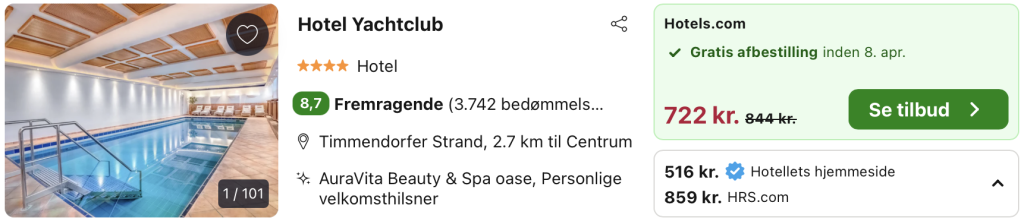 Vi har taget udgangspunkt i et ophold fra den 12. – 13. april på Hotel Yachtclub Timmendorfer Strand, der er et elegant og moderne hotel, der tilbyder en unik kombination af luksus, komfort og en fantastisk beliggenhed tæt på Østersøens smukke kyst. Beliggende i den populære badeby Timmendorfer Strand, er dette hotel den perfekte destination for både afslapning og eventyr.
