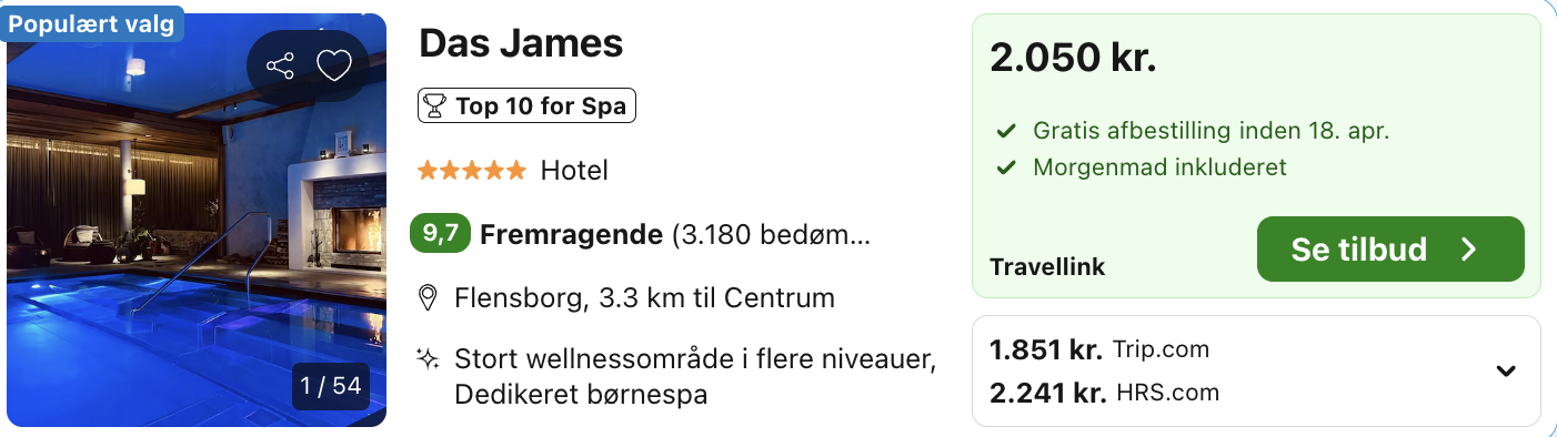 Bemærk: Den samlede pris for opholdet er 1.851,- for 2 personer i et dobbeltværelse, hvilket svarer til 926,- per person. Der kan være mindre forskelle på prisen på mobil og computer. Undersøg med fordel, hvor det er billigst inden bestilling. Rejs365 er ikke et rejsebureau, men en rejseside der finder gode tilbud! – Vi modtager kommission, men det påvirker ikke din pris! Læs mere her |