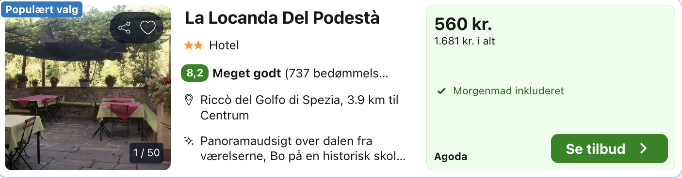 4 dage ved Manarola for kun 1.226,- per person inkl. fly og godt hotel med god beliggenhed!
