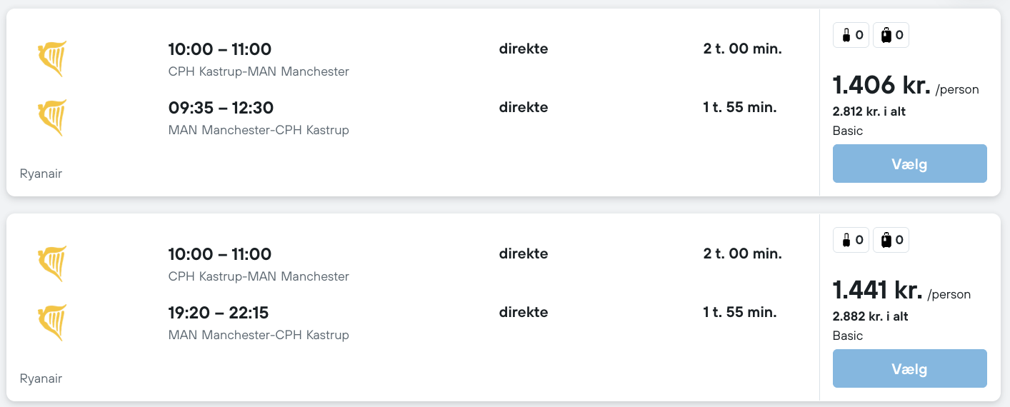 På vores flysøgemaskine har vi fundet billige flybilletter fra København til Manchester: