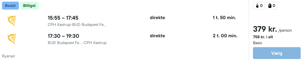 På vores flysøgemaskine har vi fundet billige billetter fra Billund og København til Budapest: