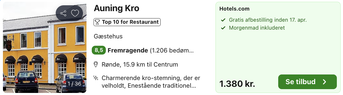 Vi har taget udgangspunkt i et ophold fra den 18. – 19. april.