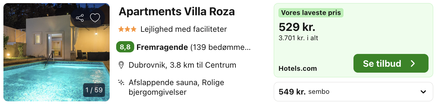 1 uge i Dubrovnik for kun 2.595,- per person inkl. fly og godt lejlighedshotel med pool!