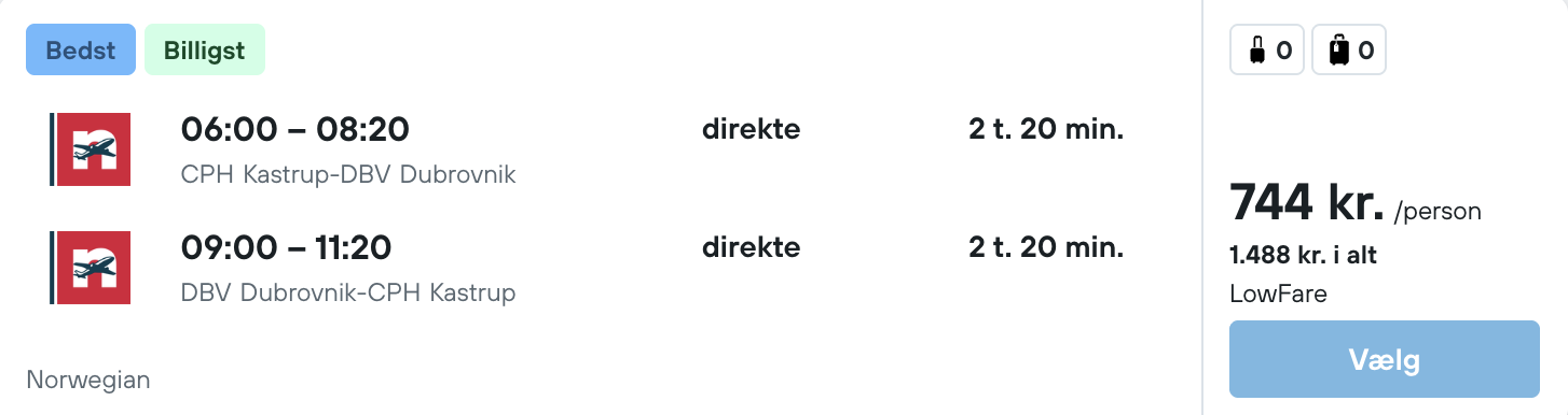Vi har fundet billige flybilletter fra København til Dubrovnik: