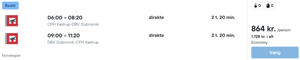 Vi har fundet billige flybilletter fra København til Dubrovnik: