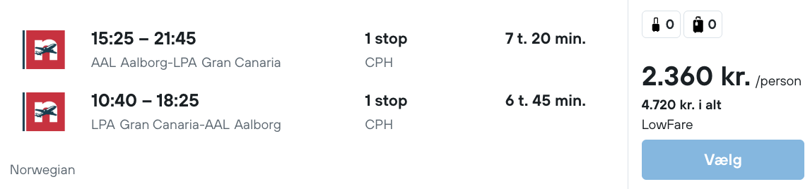 Vi har fundet billige billetter fra København og Aalborg til Gran Canaria: