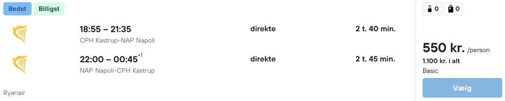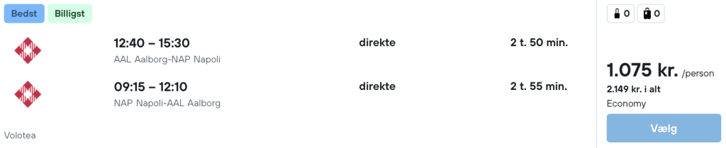 Vi har fundet billige flybilletter fra København og Aalborg til Napoli.