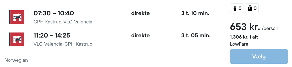 Flyprisen inkluderer kun en lille taske, men bagage kan tilkøbes.