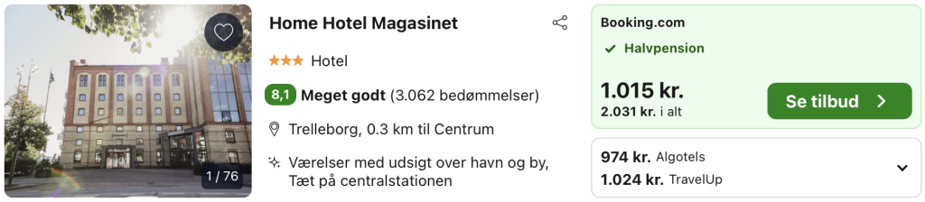 Forlænget weekend i Trelleborg med halvpension for kun 974,- per person inkl. godt 3-stjernet hotel!
