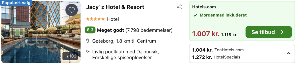 Hotellet byder på flere restauranter, barer, en spektakulær tagterrasse med poolklub og et afslappende spaområde. Centralt placeret, tæt på Liseberg og Universeum, tilbyder Jacy’z både luksus og let adgang til byens attraktioner.