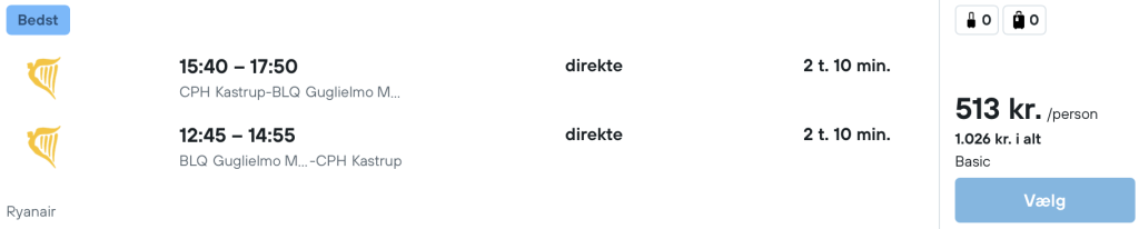 Flyprisen inkluderer kun en lille taske, men bagage kan tilkøbes.