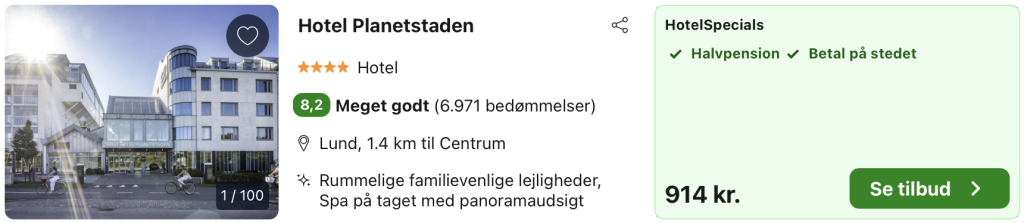Weekendophold på First Hotel Planetstaden i Lund for kun 661,-