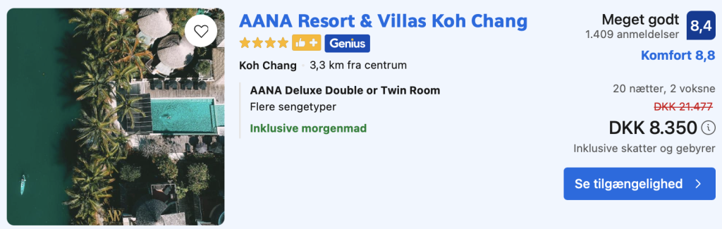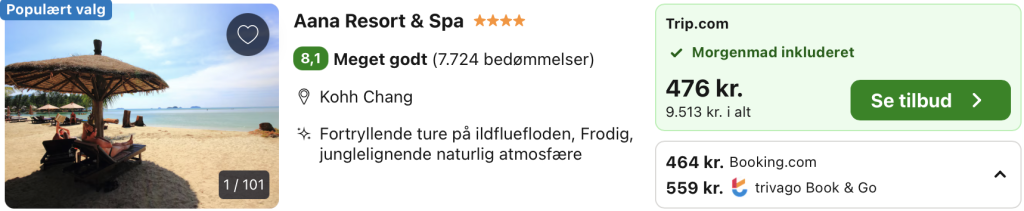 Husk at logge ind / oprette en gratis bruger på trivago samt hos Booking.com. Derved opnås den bedste pris!