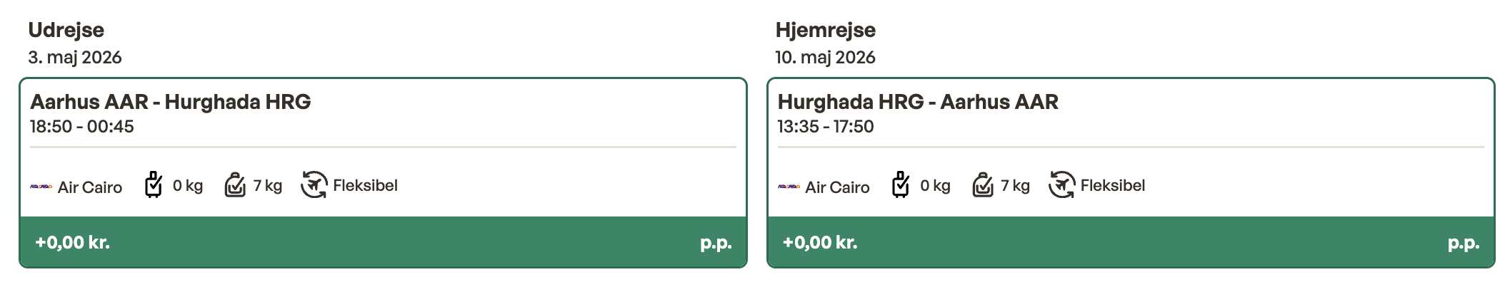 Hvis rejsen er med “Vis rejse” link, så er der tale om en pakkerejse, hvor fly og hotel bestilles på en gang.
