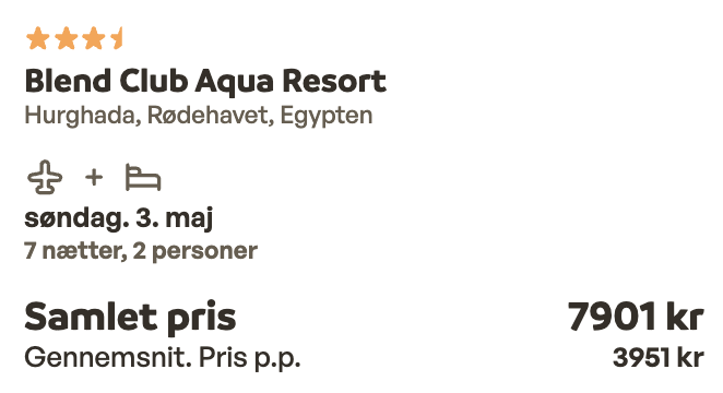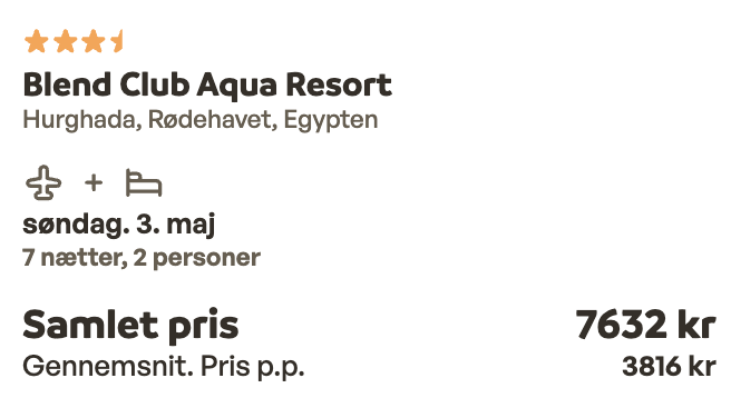 Hvis rejsen er med “Vis rejse” link, så er der tale om en pakkerejse, hvor fly og hotel bestilles på en gang.