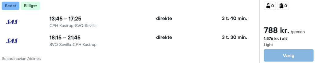 På vores flysøgemaskine har vi fundet billige flybilletter fra København til Sevilla: