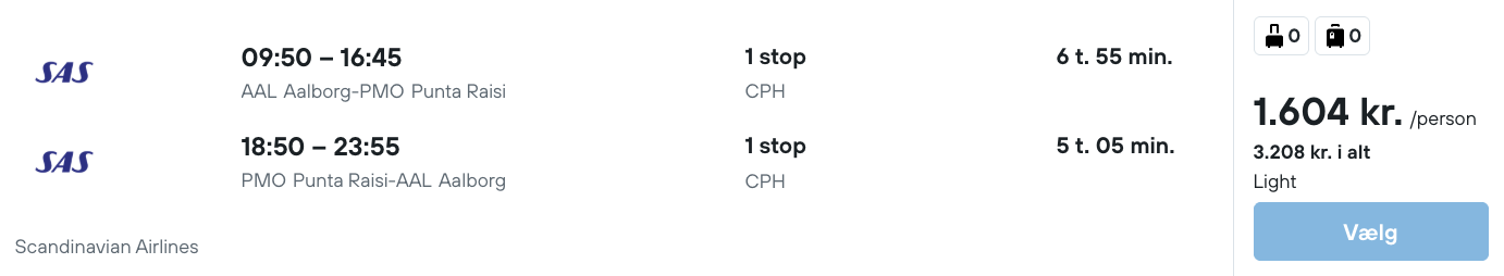 Hvis rejsen er med “Vis rejse” link, så er der tale om en pakkerejse, hvor fly og hotel bestilles på en gang.