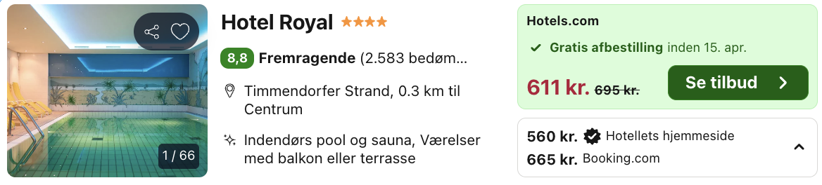 Vi har taget udgangspunkt i et weekendophold fra den 19. – 20. april på Hotel Royal ved Timmendorfer Strand, der er en af de mest eksklusive destinationer langs Østersøkysten i Tyskland, hvor gæsterne kan nyde luksus, komfort og den smukkeste udsigt over havet. Beliggende i den charmerende by Timmendorfer Strand, et af de mest populære feriemål i Schleswig-Holstein, tilbyder dette hotel en uforglemmelig ferieoplevelse for både par, familier og dem, der ønsker en afslappende pause fra hverdagens travlhed.