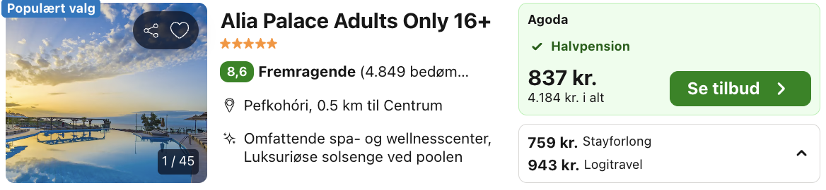 Husk at vælge hotellet med halvpension inkluderet. Rejs365 er ikke et rejsebureau, men en rejseside der finder gode tilbud! – Vi modtager kommission, men det påvirker ikke din pris! Læs mere her |