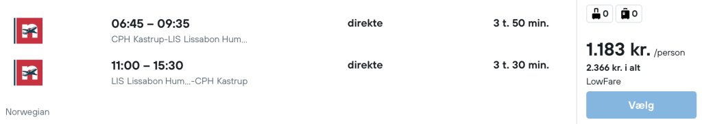 På vores flysøgemaskine har vi fundet billige flybilletter fra København og Billund til Lissabon.