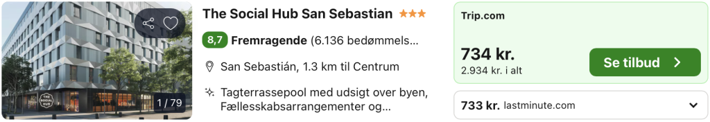 5 dage i San Sebastián for kun 2.320,- per person inkl. fly og flot 3-stjernet hotel med pool i hjertet af byen!