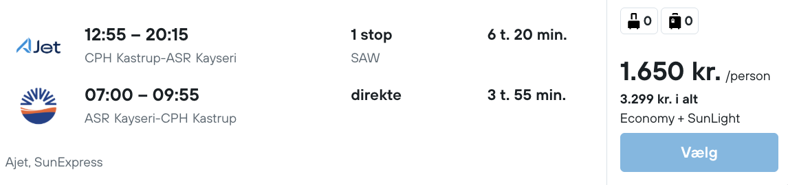 På vores flysøgemaskine har vi fundet billige billetter fra København til Kappadokien: