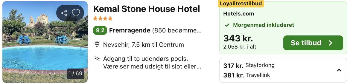 Hvis rejsen er med “Vis rejse” link, så er der tale om en pakkerejse, hvor fly og hotel bestilles på en gang.