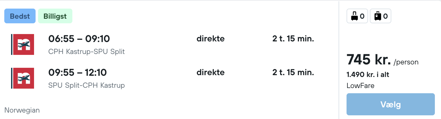 Flyprisen inkluderer kun en lille taske, men bagage kan tilkøbes.