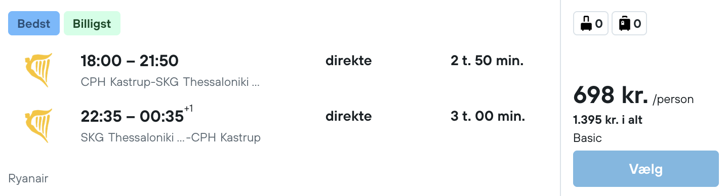Flyprisen inkluderer kun en lille taske, men bagage kan tilkøbes.