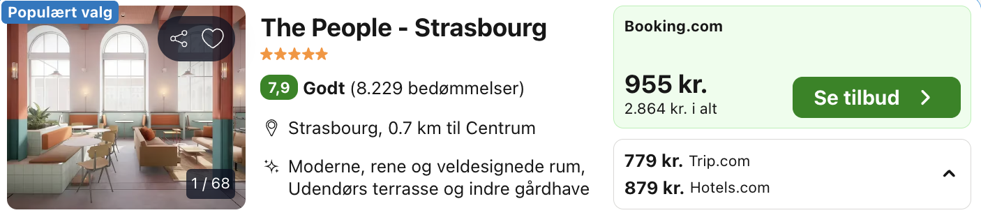 | Bemærk: Husk at lade søgningen blive helt færdig. Der kan være mindre prisforskelle på mobil og pc. Undersøg med fordel, hvor det er billigst inden bestilling. Vælg Laveste Pris på Trivago.