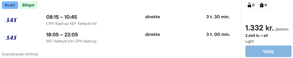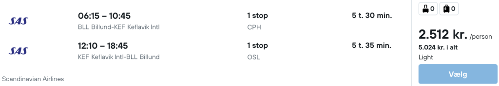 På vores flysøgningsmaskine har vi fundet billige flybilletter fra København og Billund til Island: