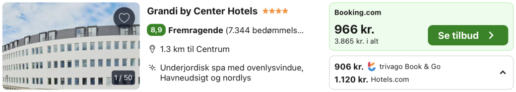 Hvis rejsen er med “Vis rejse” link, så er der tale om en pakkerejse, hvor fly og hotel bestilles på en gang.