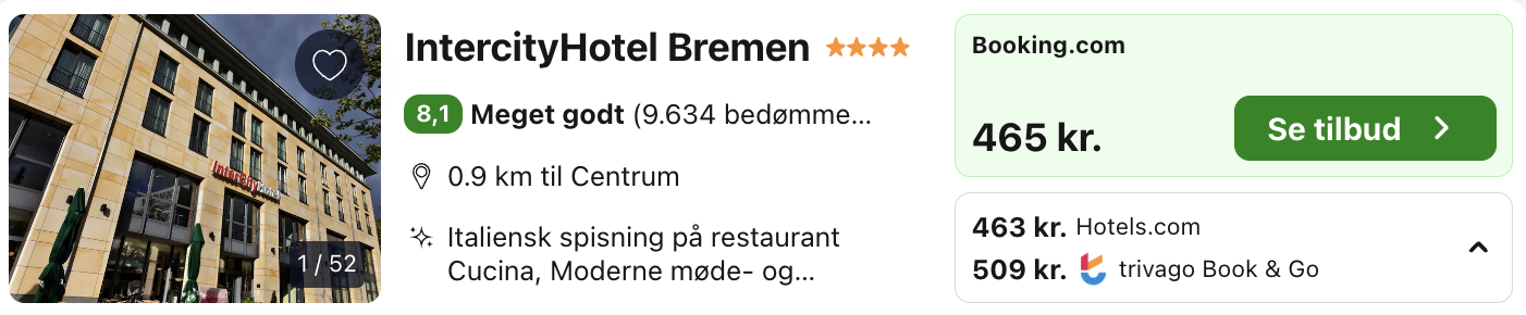 Vi har taget udgangspunkt i 4-stjernede InterCityHotel Bremen, der