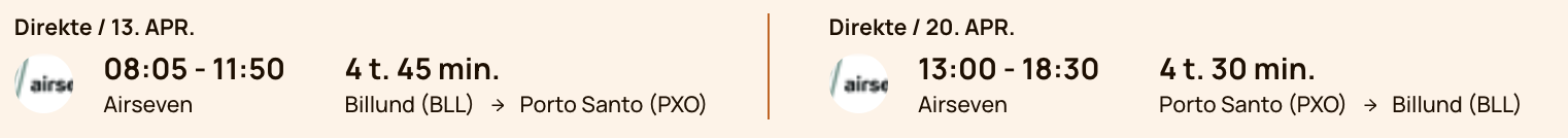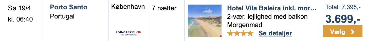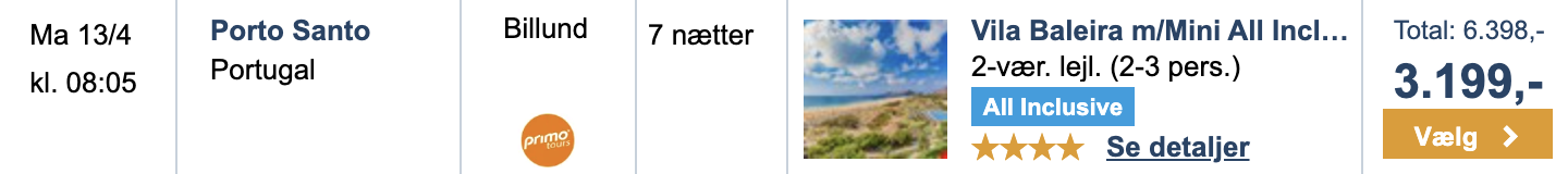 På Travelmarket har vi hos Primo Tours og Folkeferie fundet et godt tilbud fra Billund og København til Porto Santo.