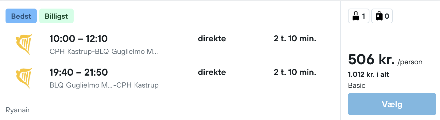 På vores flysøgemaskine har vi fundet billige flybilletter fra København til Bologna:​