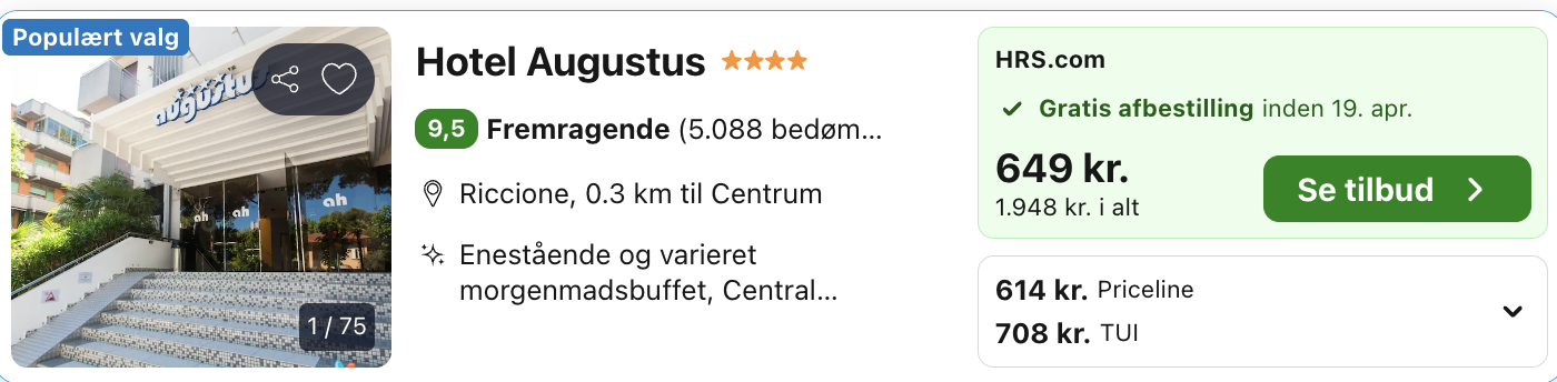 4 dage i Riccione for kun 1.428,- per person inkl. fly og flot 4-stjernet hotel!