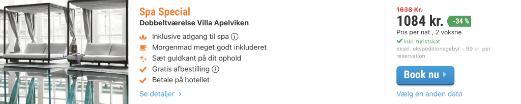 Bemærk: Den samlede pris for overnatningen er 1.182,- for 2 personer i et dobbeltværelse med morgenmad, hvilket svarer til 591,- per person. Rejs365 er ikke et rejsebureau, men en rejseside der finder gode tilbud! – Vi modtager kommission, men det påvirker ikke din pris! Læs mere her