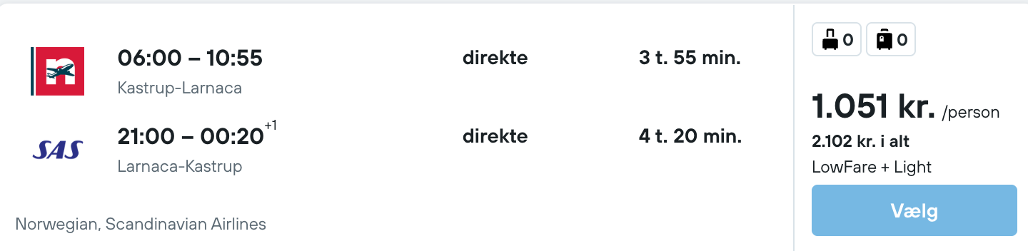 Flyprisen inkluderer kun en lille taske, men bagage kan tilkøbes.