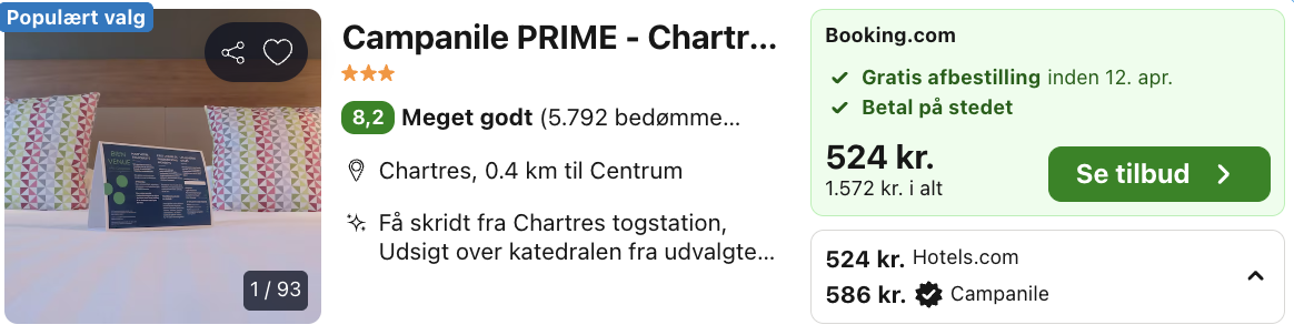 På vores flysøgemaskine har vi fundet billige flybilletter fra København og Billund til Paris. Herfra er der ca. 1.5 time til Chartres.