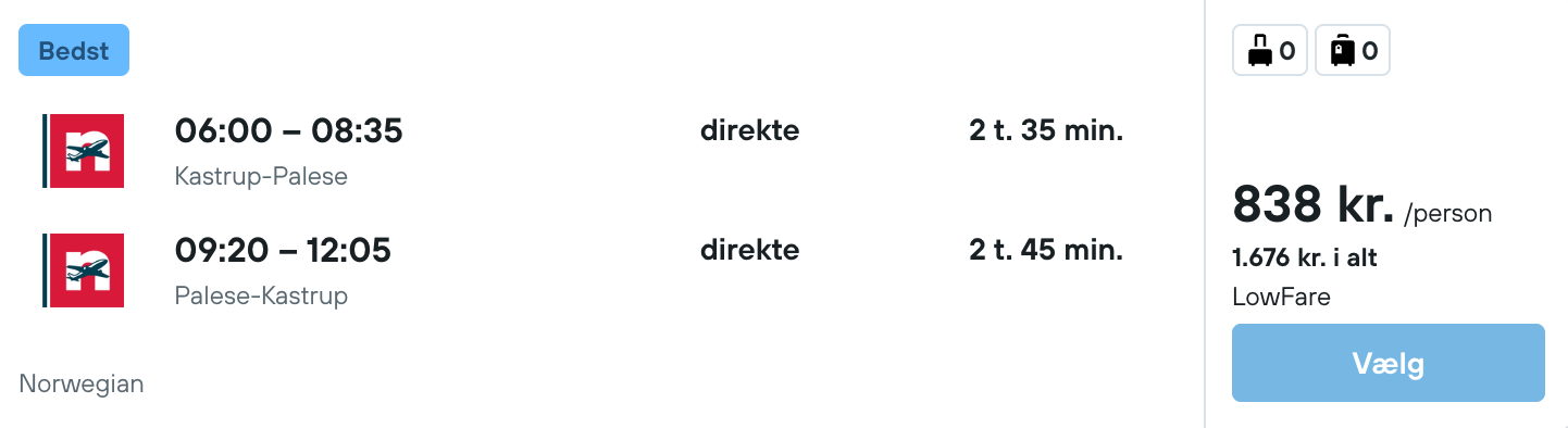Flyprisen inkluderer kun en lille taske, men bagage kan tilkøbes.