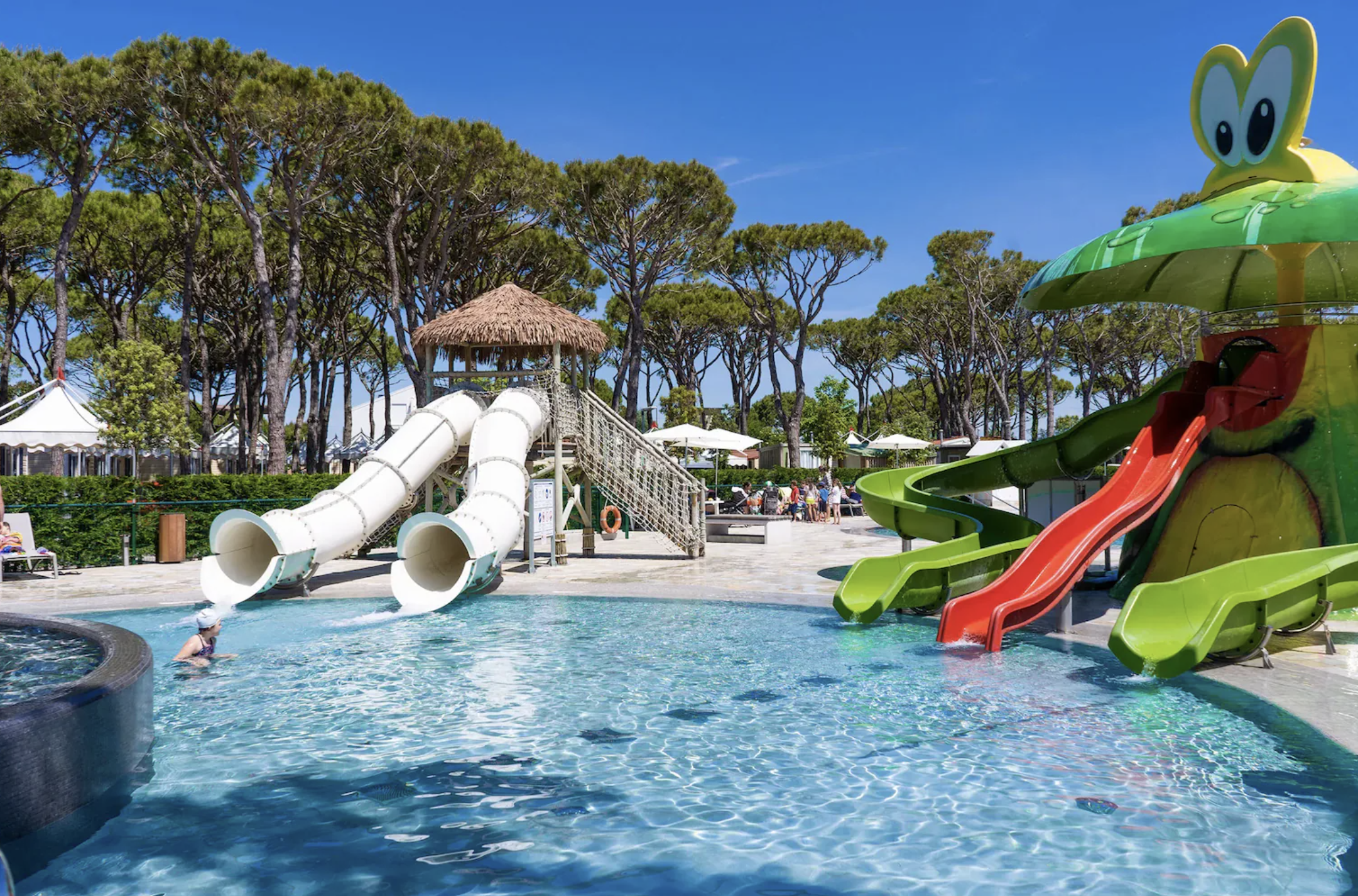 Camping Village Cavallino ligger i hjertet af Cavallino-Treporti, hvor afslappet strandliv og smuk natur går hånd i hånd. Her bor du direkte ved en lang, gylden sandstrand omgivet af grønne omgivelser, der indbyder til både ro og aktivitet. Campingpladsen byder på moderne faciliteter, hyggelig atmosfære og gode muligheder for både familier og par, uanset om ferien står på afslapning, badeliv eller cykelture i området.