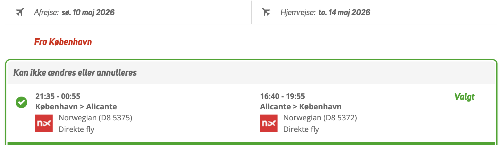 Hvis rejsen er med “Vis rejse” link, så er der tale om en pakkerejse, hvor fly og hotel bestilles på en gang.
