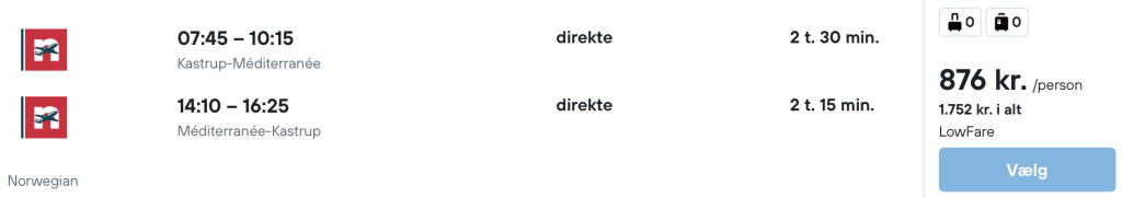 Flyprisen inkluderer kun en lille taske, men bagage kan tilkøbes.