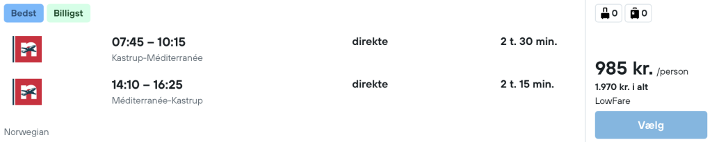 Flyprisen inkluderer kun en lille taske, men bagage kan tilkøbes.