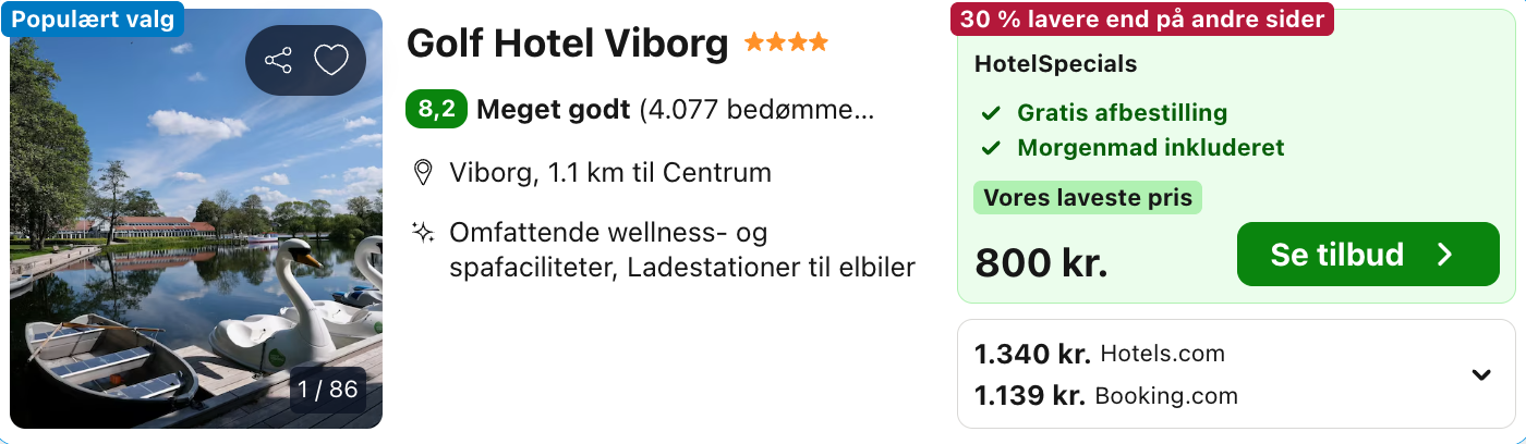 Bemærk: Den samlede pris for weekendopholdet er 800,- for 2 personer i et dobbeltværelse, hvilket svarer til 400,- per person. Rejs365 er ikke et rejsebureau, men en rejseside, der finder gode tilbud! – Vi modtager kommission, men det påvirker ikke din pris! Læs mere her