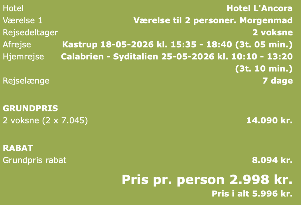 På Amisol har vi fundet et godt tilbud fra København til Calabrien: