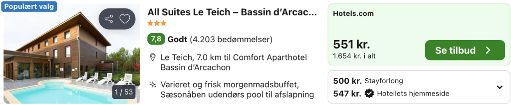 4 dages forlænget weekend i La Teste-de-Buch i Sydvestfrankrig for kun 1.736,- inkl. fly og godt 3-stjernet hotel!