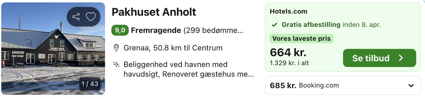 Bemærk: Den samlede pris for opholdet er 1.329,- for 2 personer i et dobbeltværelse, hvilket svarer til 664,- per person. Der kan være mindre prisforskelle på mobil og pc. Undersøg med fordel, hvor det er billigst før bestilling. Rejs365 er ikke et rejsebureau, men en rejseside, der finder gode tilbud! – Vi modtager kommission, men det påvirker ikke din pris! Læs mere her